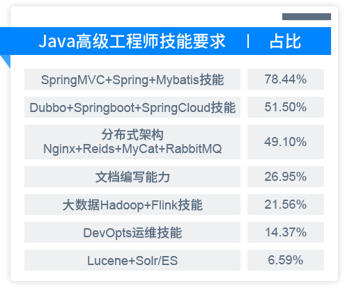 企业对于Java开发工程师技术需求占比,要求一专多能