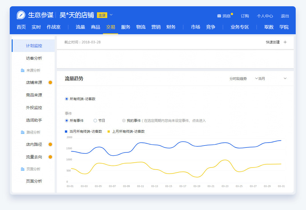 同行对比、单品分析、店铺流量、店铺交易